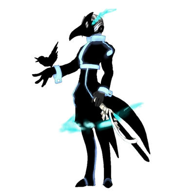 グアノ別衣装全身図。『鐵の嘴』の戦闘服を模した姿は勿論だが、立っている事に注目。燕尾服とペストマスクが鳥要素。