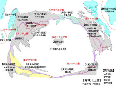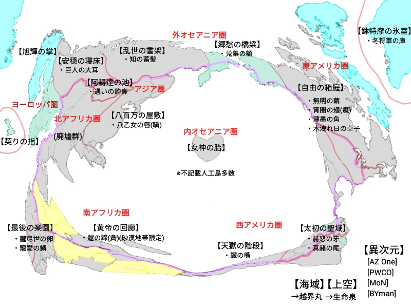 正「世界の中心を爆心地に大陸が千切れた後に繋がりあって、輪状になっちゃってるよ。北極圏南極圏だけは残っているけどね。」