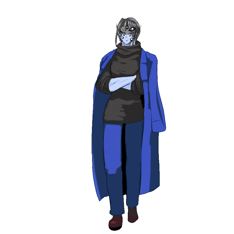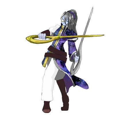 ターフェアイト全身図。青はユークレースを、紫色は自分を表している拘りの衣装。