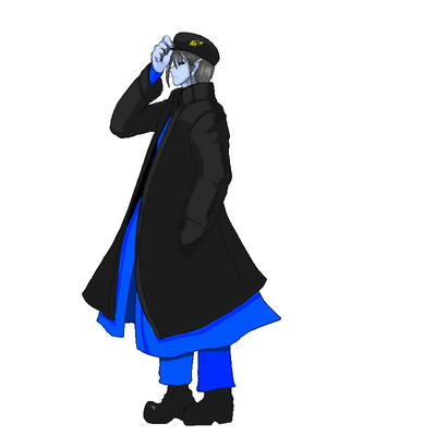 ブラックスター全身図。どんな時でもこの黒帽子黒外套姿で、中に色々入れている……